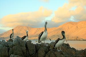 pelicans during sunset